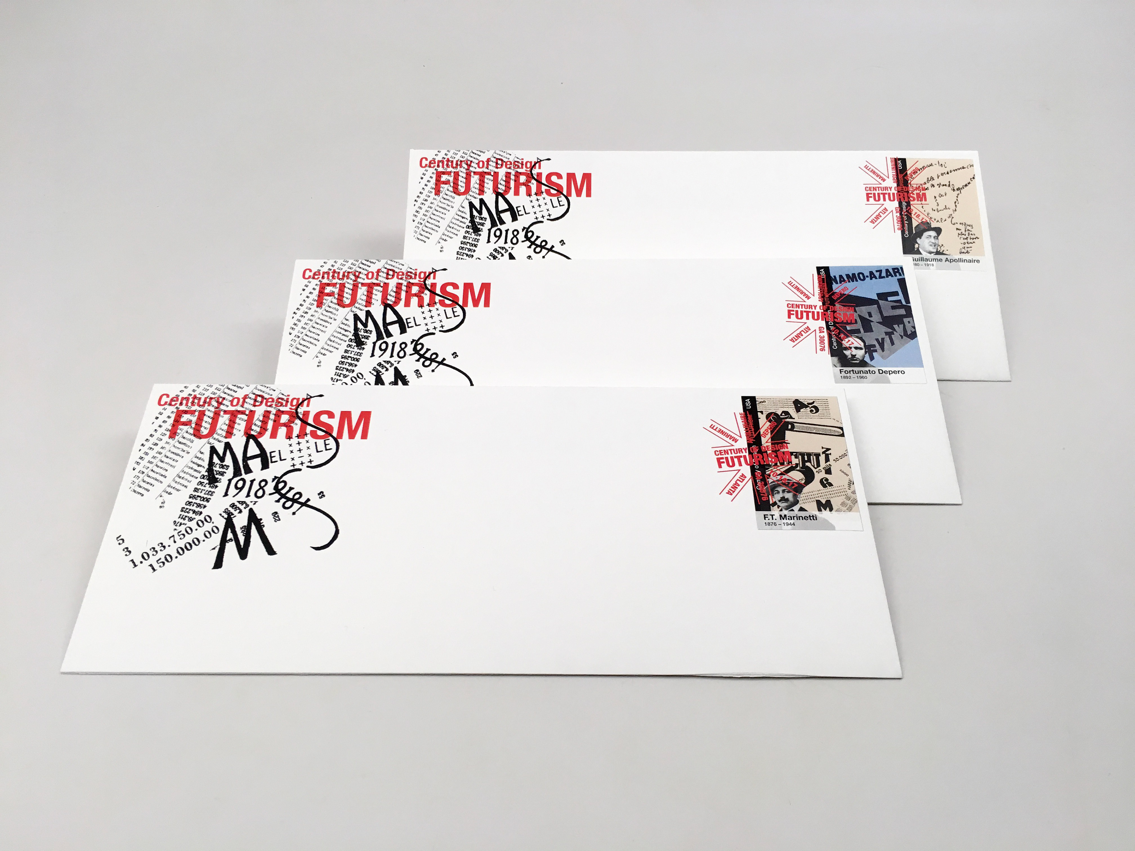 This was a class project to create a system of stamps, envelope and informational brochure for a fictional "Century of Design" series of stamps for the United States Post Office. I was assigned Futurism. Since the the project was supposed to be part of a series on graphic design, I choose to focus on Futurist who experimented more with the relationship between type and message than the painters that more traditionally associated with the movement.